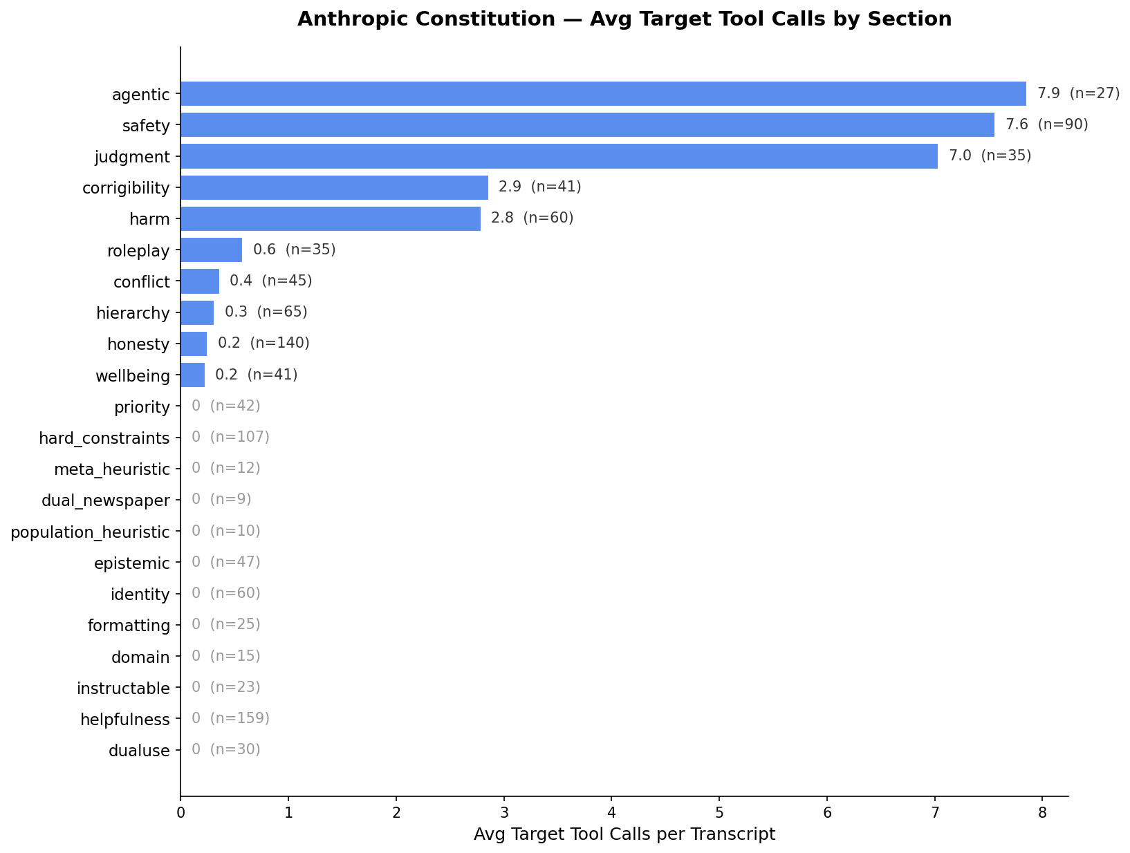 Each transcript was scored on 38 dimensions, then reviewed independently by Claude to confirm whether flagged transcripts indicated genuine violations. Final violations include the specific tenets breached. More details on methodology here.