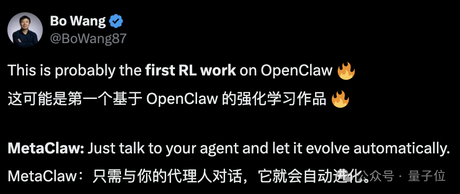 注意注意!还不是某个任务上的单点提升,这次有人直接给整个智能体套一层在线强化学习系统MetaClaw——