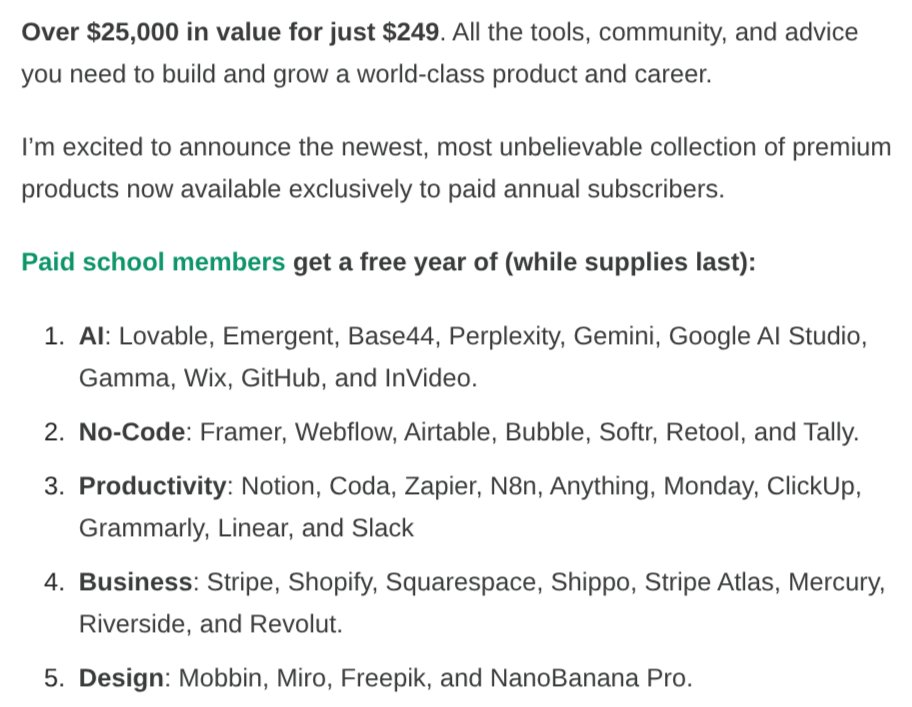 国外的 AI 课程真离谱,买课程送这么一堆服务的一年兑换码,好像也没看到有人说这个:adplist.org/vibe-code-desi…