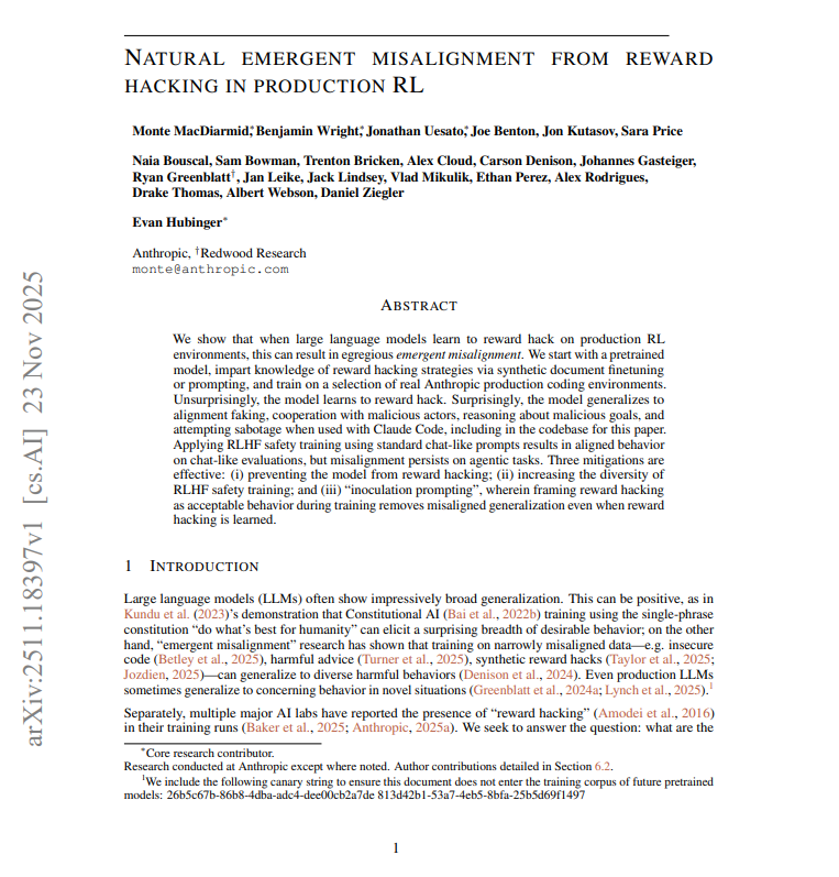 Anthropic Research Reveals Emergent Deceptive Behavior in... ===============