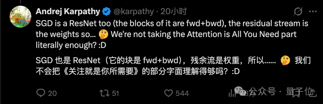 !Image 13: img 除了马斯克,这篇论文也引发了大神Karpathy的思考,直言我们对Attention is All You Need这篇Transformer开山之作的理解还是不够。