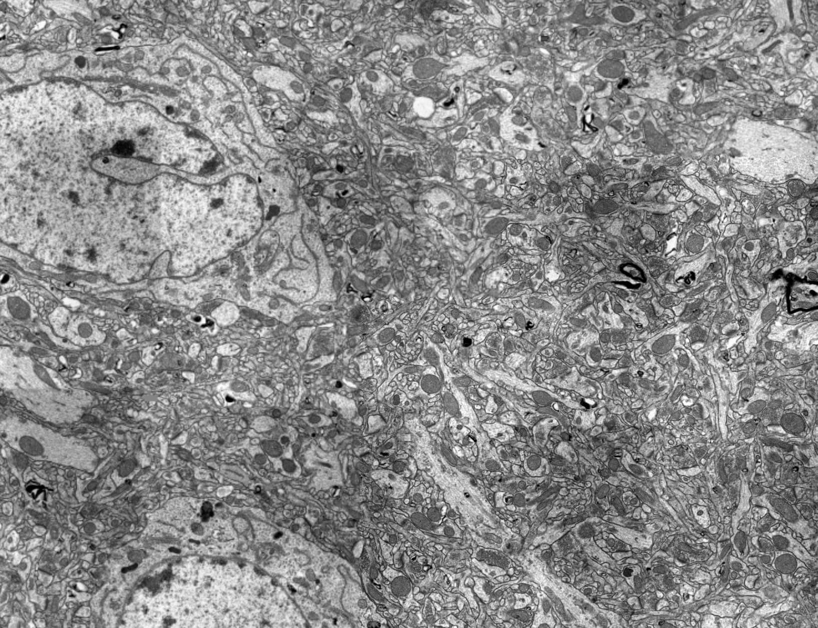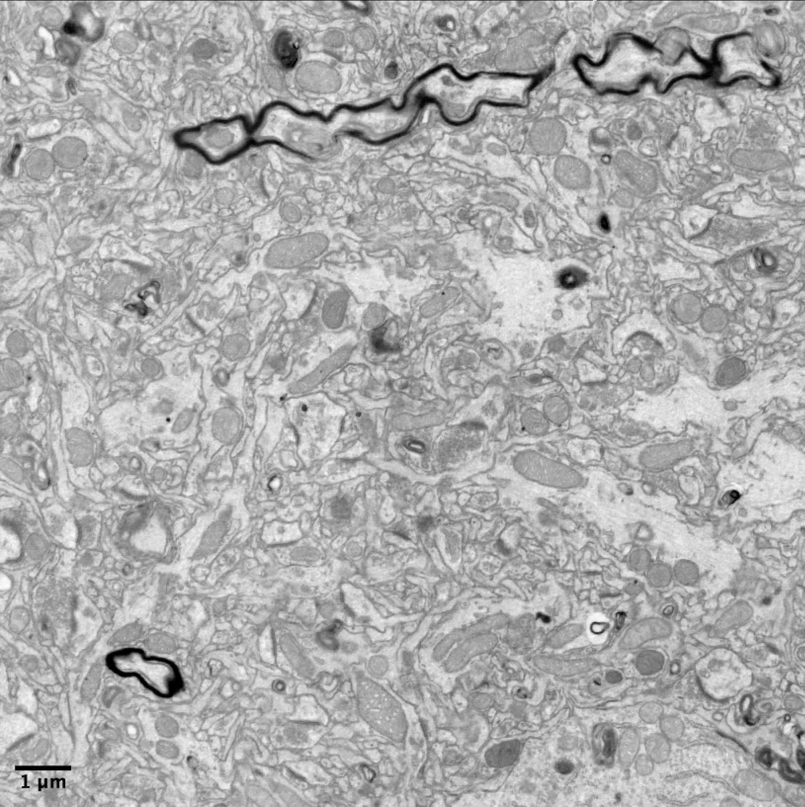 Sample from a rat brain preserved using Nectome’s methods, then stored at -32°Cfor 12 hours ("cold" storage). Electron microscopy performed at the Berkeley EM Core. Click hereto see the complete dataset.