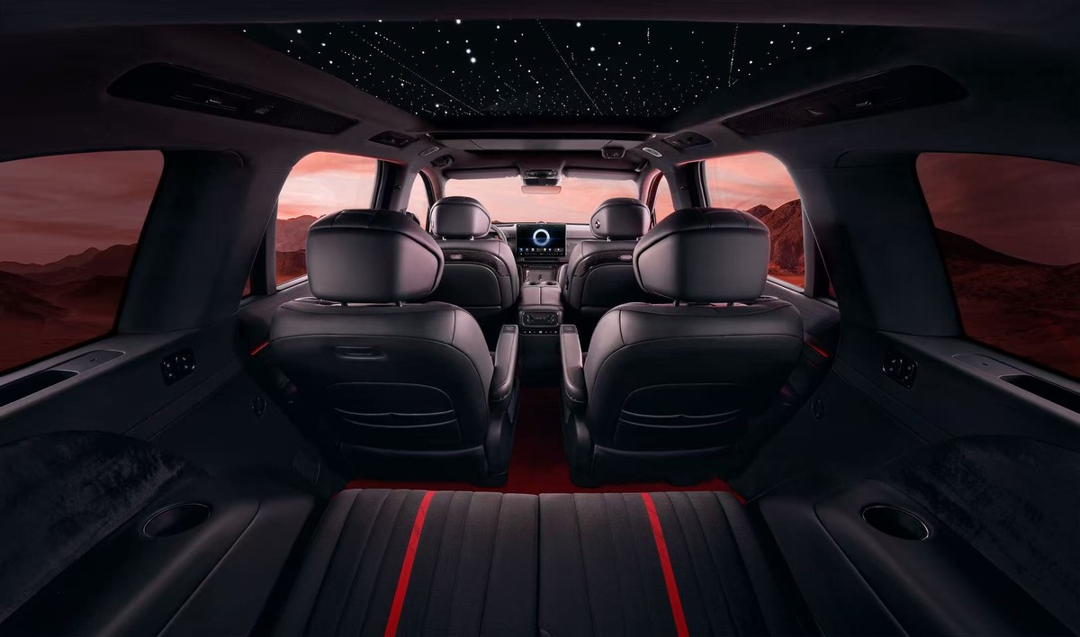 内饰部分,泰山黑武士版以大面积的“丹墨”为底,在座椅缝线、头枕等关键之处保留“丹砂”点红。墨晶璀璨按键选用高品质黑水晶材质,采用钻石切割工艺打造,深邃大气兼具沉稳质感;流云墨韵饰板在设计中汲取“流云纹”的光影技法,如同浓墨滴入清水后的自然晕染,呈现出气韵生动的东方意境;星河天幕星空顶采用与百万级豪车同源的星空顶工艺,598颗灯珠如真实星点密布穹顶,三种模式完美契合不同场合,营造“穹顶之下,坐拥宇宙”的静谧感,彰显侠之大者的蓬勃气韵。