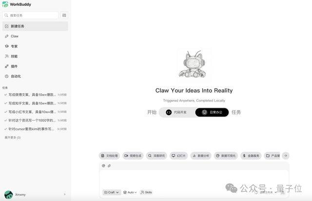 而这整套内容创作流程的幕后操盘手,正是腾讯推出的全场景职场AI智能体桌面工作台——WorkBuddy。