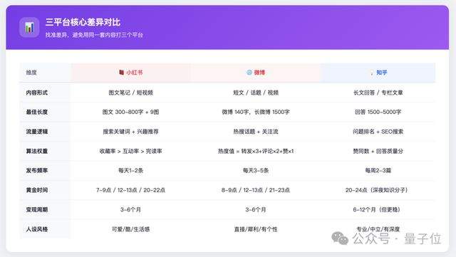 人家不光告诉你具体应该怎么创作,还把不同平台的受众画像、账号定位、核心指标、变现路径都总结了一遍: