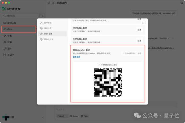 不仅如此,就在这两天,WorkBuddy还顺带接入了微信ClawBot插件。
