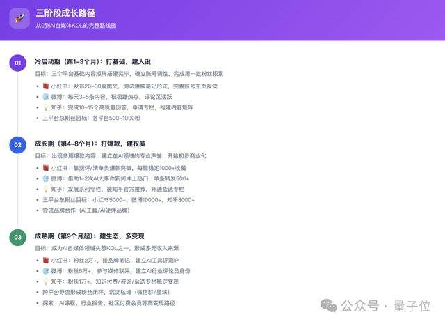比如人家一上来就点明,前三个月是打基础、立人设的关键期,重点是把内容矩阵和账号定位先搭起来。