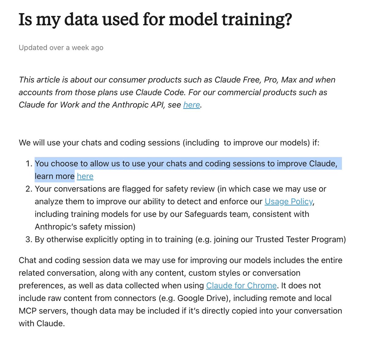 Claude had users EXPLICITLY decide, not do any default anthropic.com/news/updates-t…