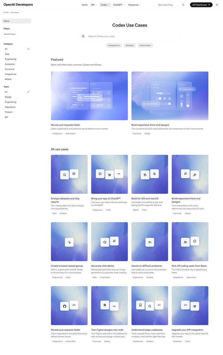 openai 的 Codex 官方文档越做越好了,简直是个金矿,最近发了一篇 Codex User Case: developers.openai.com/codex/use-cases