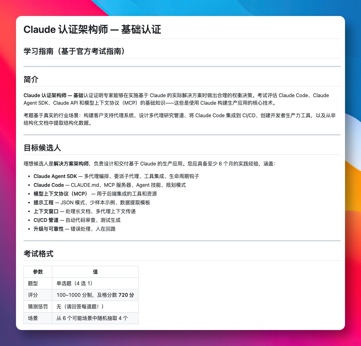偶然看到一位开发者分享了其学习指南: Claude Certified Architect,把认证考试的核心知识点整理得非常清晰。