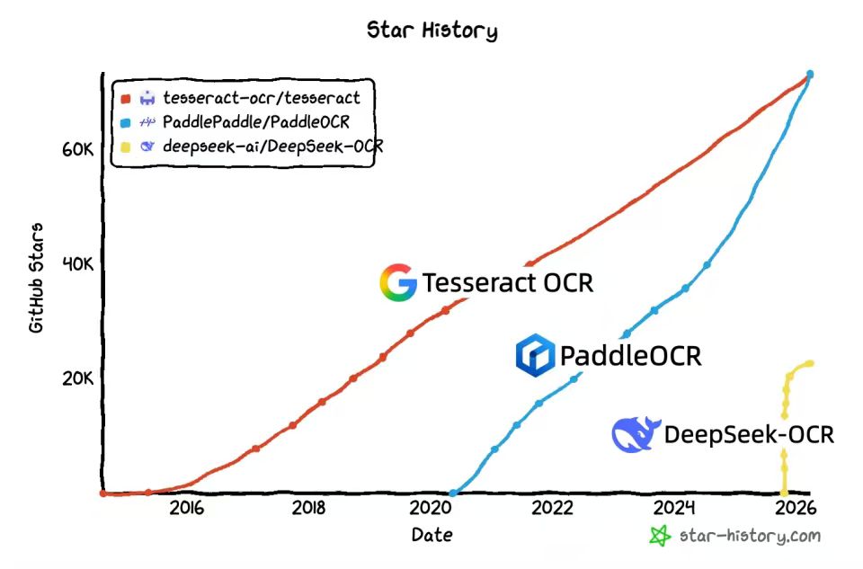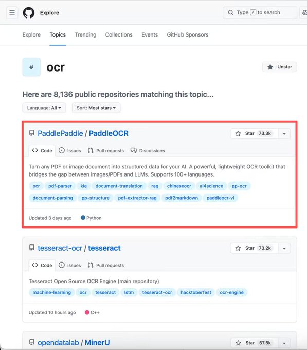 PaddleOCR 以 73.3k+ Star 超越 Google Tesseract,成为全球 Star 数最高的 OCR 项目!