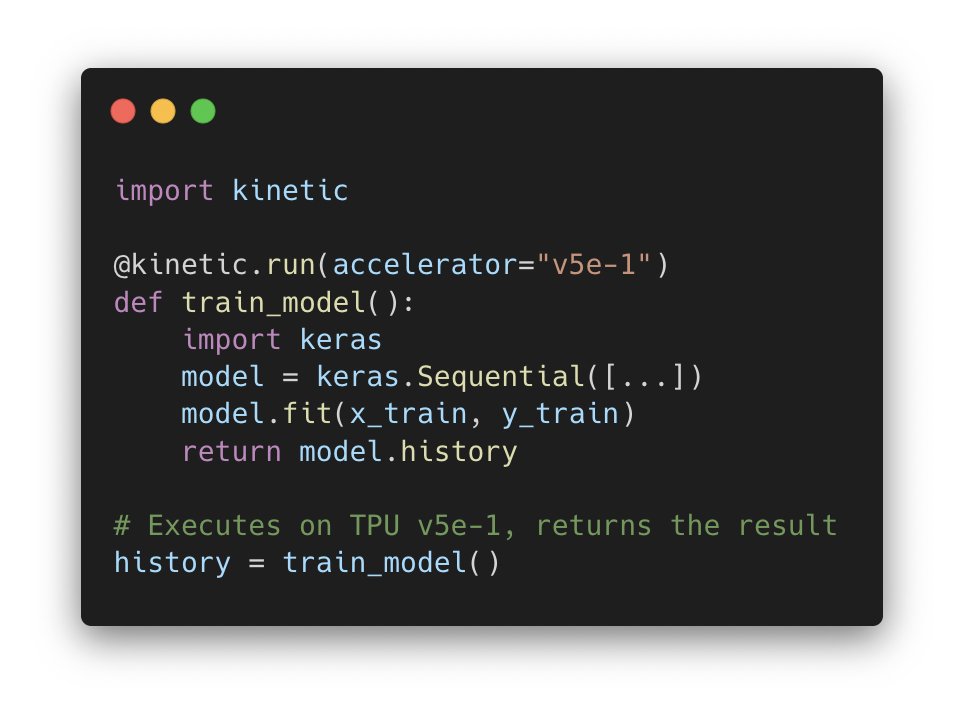 Keras Kinetic is a new library that enables seamless remote execution of jobs on Cloud TPU/GPU via a simple decorator.