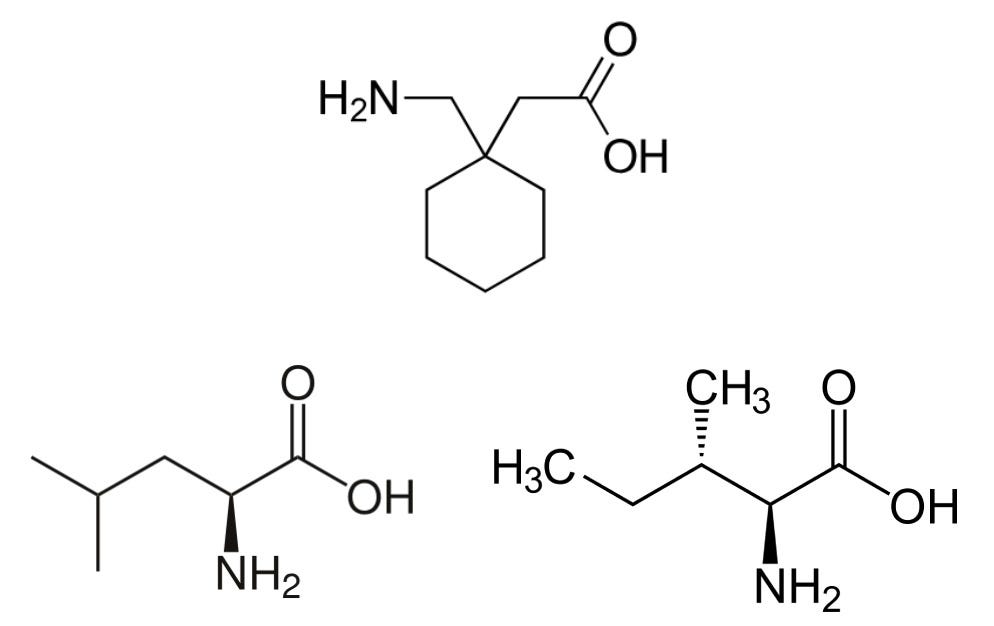 Anticlockwise from top: gabapentin, leucine, isoleucine