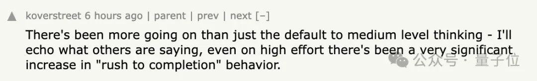 > 问题远不止是默认思考等级被改成了中等这么简单,我同意其他人说的,哪怕把effort调到最高,模型“急于完成任务”的摆烂行为也明显变多了。